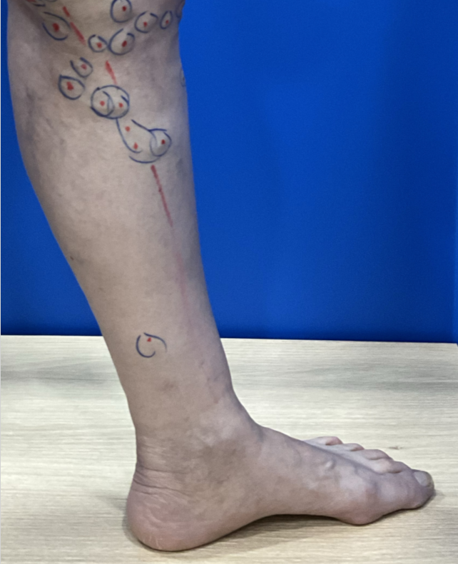 수술 부위를 표시한 마킹(파란선, 빨간선)이